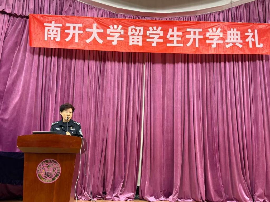 为帮助同学们尽快适应、融入在中国的留学生活,典礼特别邀请了天津市出入境管理局贾凡警官,贾警官围绕签证办理、法律法规及日常安全等留学生高度关注的话题,为同学们做了详实的介绍与指导。