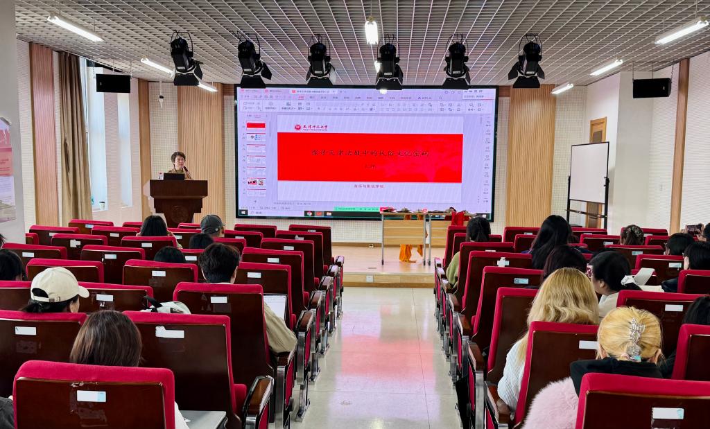 (通讯员 李谷豫 摄影报道)2026年4月2日上午,汉语言文化学院“公能”修身系列讲座在津南校区学院514报告厅举行。讲座特邀天津师范大学打击乐副教授、器乐系主任、天津市音乐家协会理事王静副教授以“探寻天津法鼓中民俗文化密码”为题开展讲座。