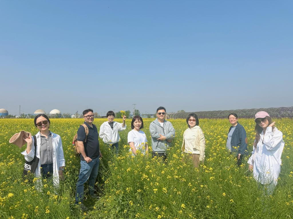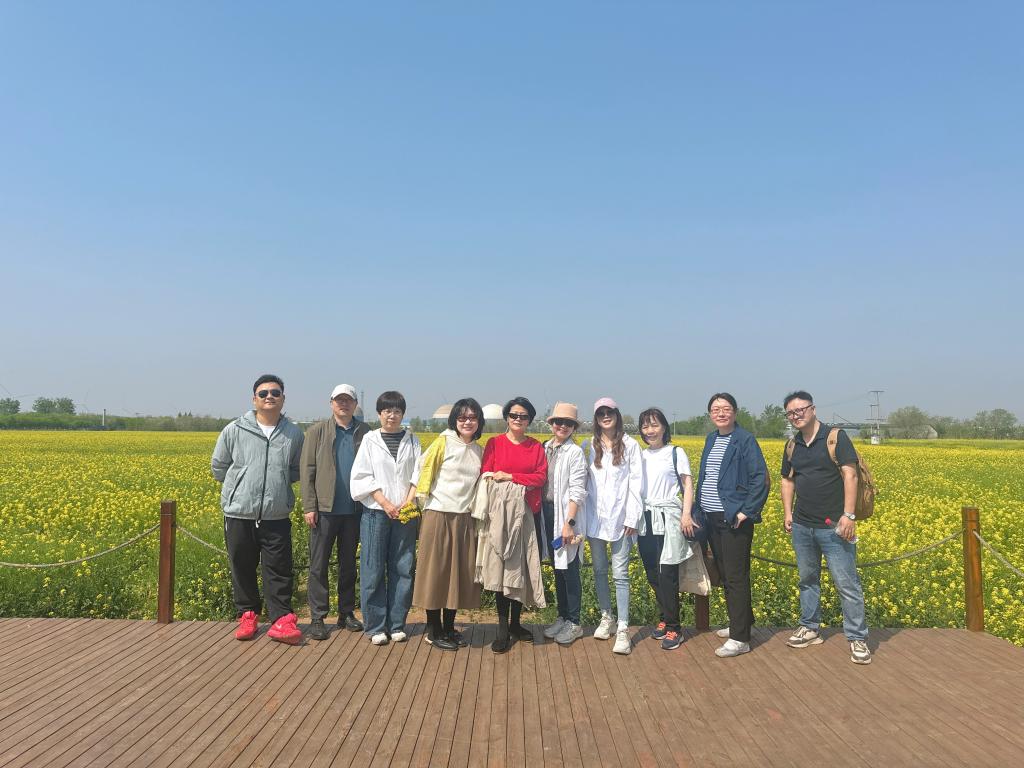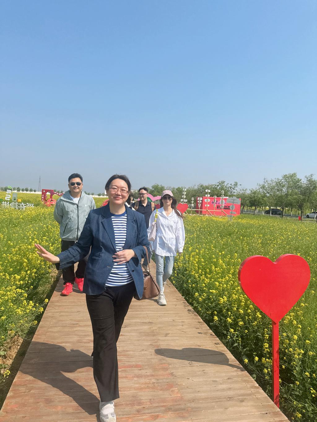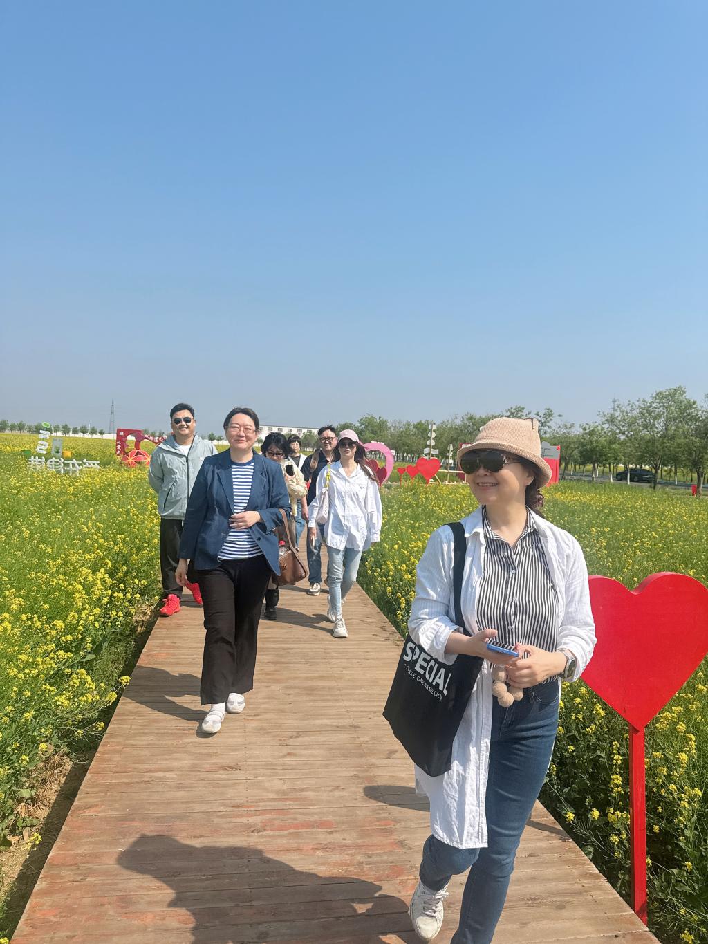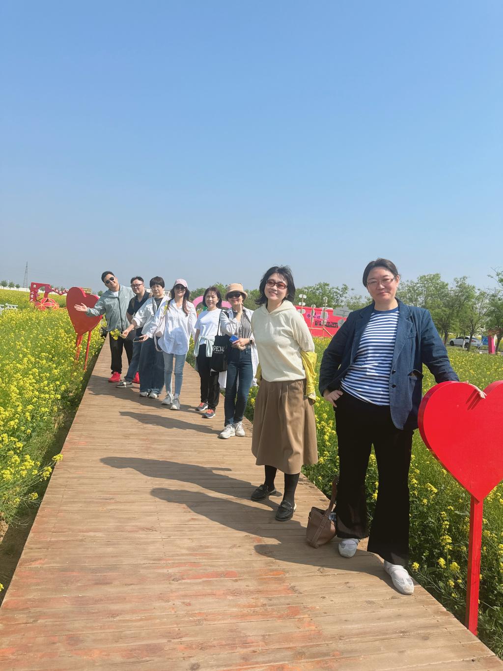 2026年4月25日,国际教育学院、汉语言文化学院工会组织教工赴天津大港区参观了第四届油菜花节。远远的,老师们被扑面而来的金黄色吸引,花朵明亮而温暖,老师们闻着花香穿梭在花丛中,留倩影、闻花香,笑脸与花海交相辉映宛如大自然精心绘制的一幅绚丽的画卷。